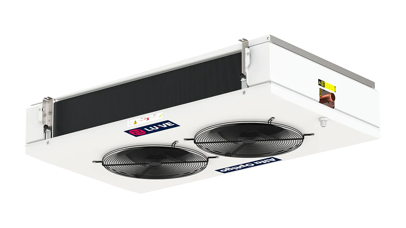 Dual discharge commercial air coolers designed to combine comfort conditions with reliable product conservation in small to medium-sized cooling, freezing and working rooms. Low air velocity and low noise make Alfa Optigo FMD especially suitable for refrigerated working and processing rooms.